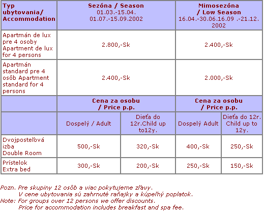 | - sauna | - zimné strediská Skipark Ružomberok a Jasná Nízke Tatry | |||||